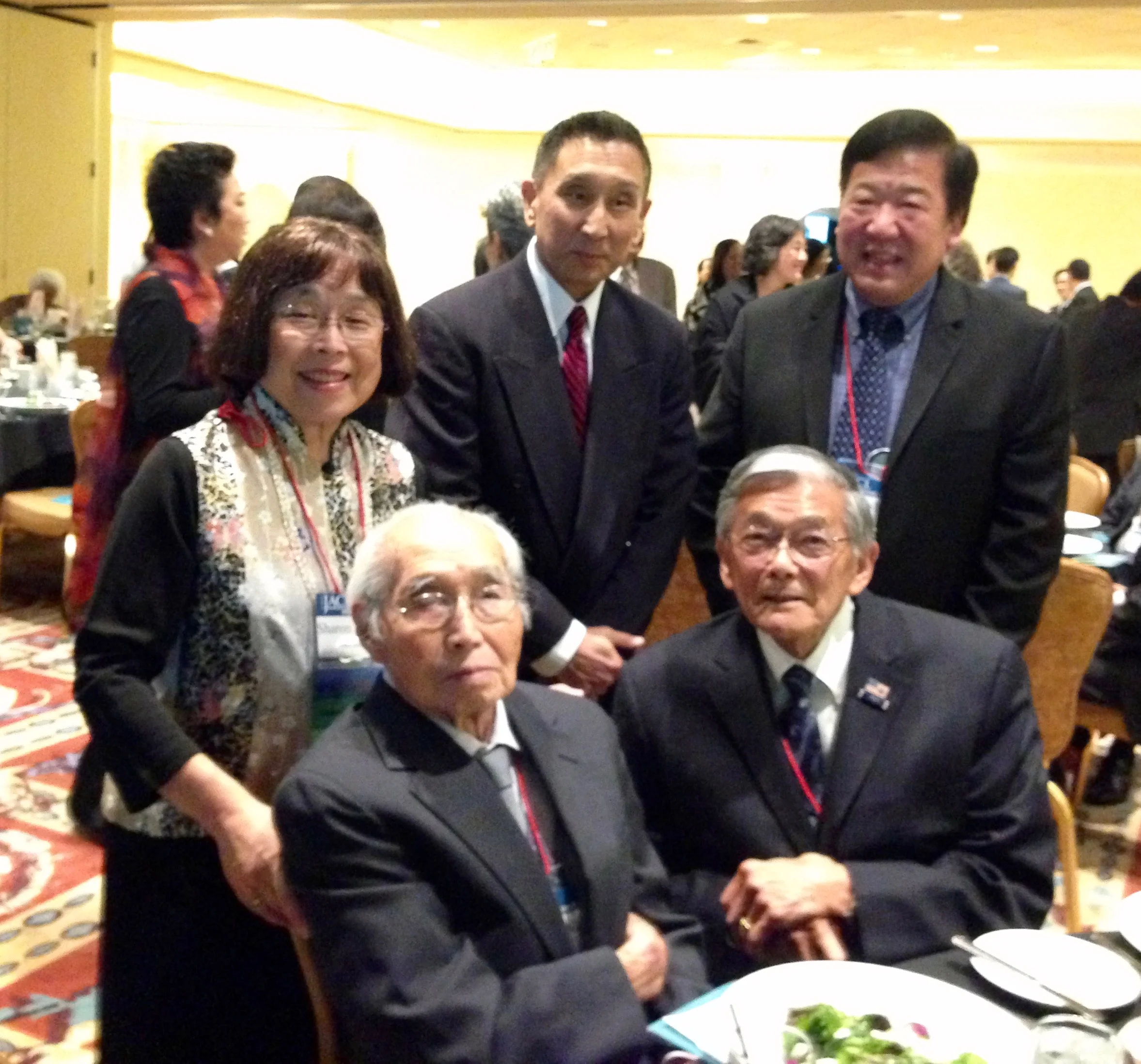 Sayonara Banquet - Back: Sharon Uyeda, Neil Kozuma, Bill Tashima. Front: Henry Uyeda and Norman Mineta